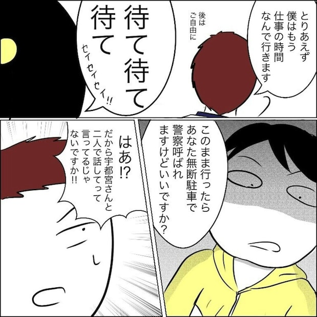 無断駐車していた犯人は宇都宮さんに訪問マッサージに来ているということが判明したものの、自分は関係ないと言い張る犯人にAiさんは内心イライラしていました。無断駐車を謝罪することもなく、仕事だからと切り抜けようとする姿勢はおかしいですよね。