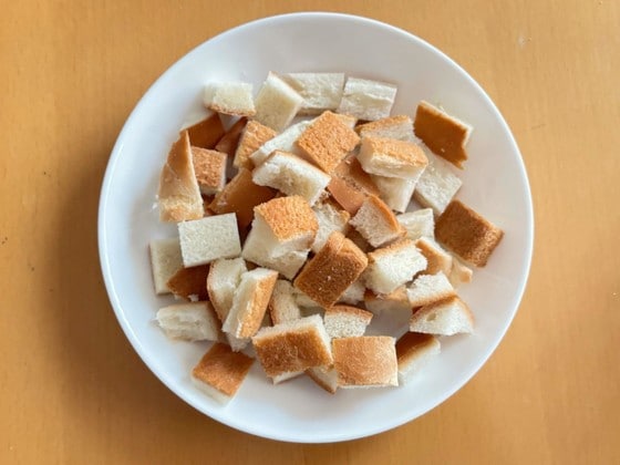 今回は、レシピ通り食パン3枚分のパンの耳を使用しました。
