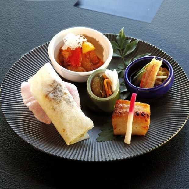 特製北京ダックをはじめ、銀鱈やエビ、ホタテが並ぶ豪華セイボリー