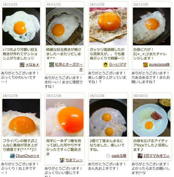 「いつもより可愛い目玉焼きが作れてテンション上がりましたっ」「こんなに黄身が浮き上がり感激です」「うん!キレイだ~!」など、つくれぽ(つくりましたフォトレポートのこと)でも好評です。