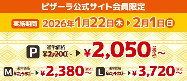 対象注文:ピザーラ公式サイトからの注文限定