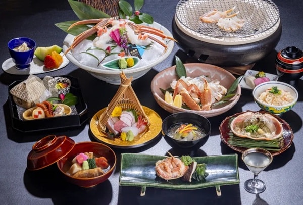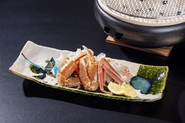 冬季限定の「活ずわいがにプラン」は、宿泊者も楽しめる。石川県産ブランドずわいがに「加能蟹」を中心に、活魚水槽で管理したずわいがにを使用し、蟹刺しや焼き蟹など、素材の持ち味を活かした献立だ。こちらも期間は、3月31日(火)まで。