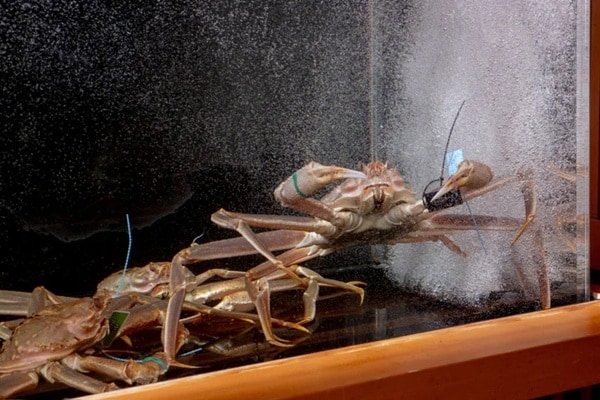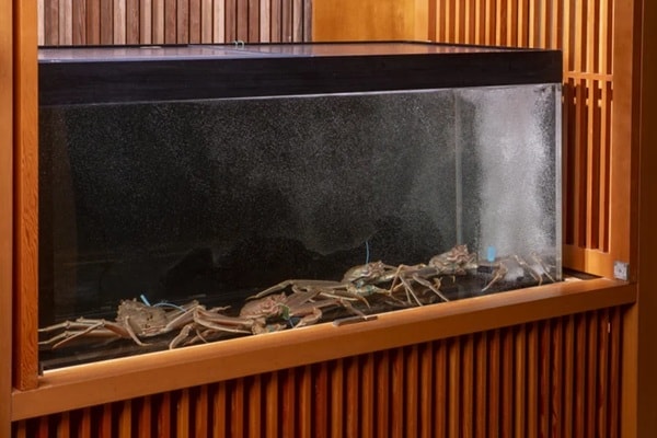 エントランスに設えた活魚水槽で管理する「活ずわいがに」