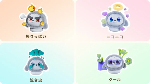 また、ユーザーの育て方次第で、「怒りっぽい」「ニコニコ」「泣き虫」「クール」といった4つのオリジナルの性格から個性が育まれ、日々異なる反応を見せるのも特徴だ。