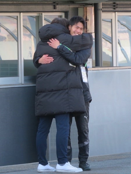 右が副キャプテンの徳永涼選手、左が小川遼也選手。2人とも一年生の時からずっと一緒にトレーニングしてきて、今回の45年ぶりの二冠に大貢献してくれました。