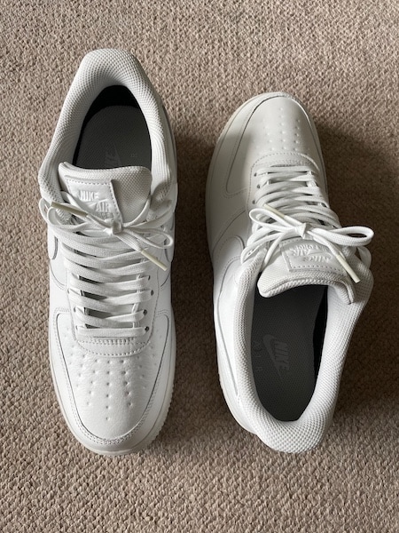 買い物は最近着ている服のパンツがだいたい太めなので、それに合うスニーカーを2足買いました。まずこちらは久しぶりのNIKEエアフォース1。