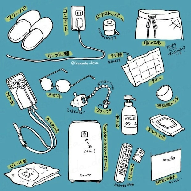 かわいいイラストもあいまって、ついついクスッと笑っちゃいますね。親にとってはただの日用品、雑貨ですが、赤ちゃんにとっては「なんだこれ?」の未知のアイテム。けれども親の気持ちとしては、少々複雑…しかし夢中になって触ったり噛んだりしている姿につい笑ってしまいますね。