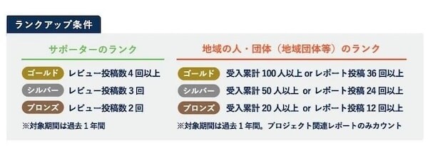 サポーターは、プロジェクト参加後のレビュー投稿数に応じて「FUNバッジ」が付与され、レビュー投稿2回で「ブロンズ」、3回で「シルバー」、4回以上で「ゴールド」になる。獲得したバッジはマイページ上に表示される。