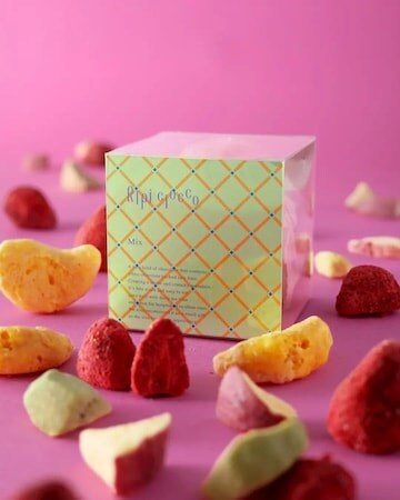 「ベジタブル&フルーツシンフォニー」3,500円(160g)は、フルーツも野菜も一度に楽しめる、バレンタインだけの特別な商品。北海道産のじゃがいも、ほおずき、ゴーヤ、いちご、りんご、皮付きみかんの6フレーバーで、フルーツだけでなく野菜も楽しめる欲張りな1缶になっている。