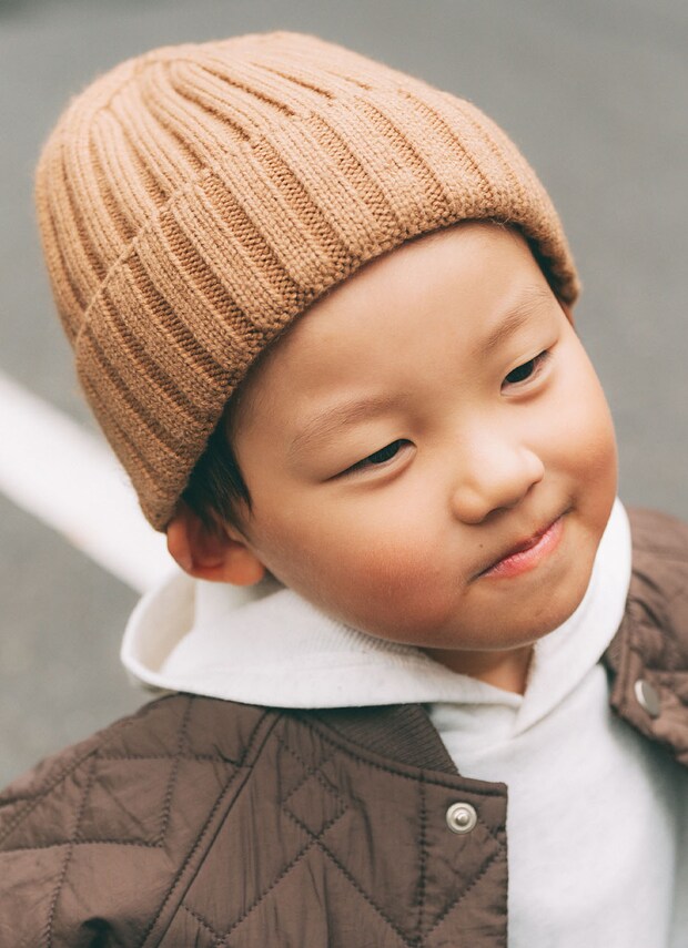 ベージュのニット帽は『ZARA』のもの。あたたかなアイテムに、冬らしさを加速!