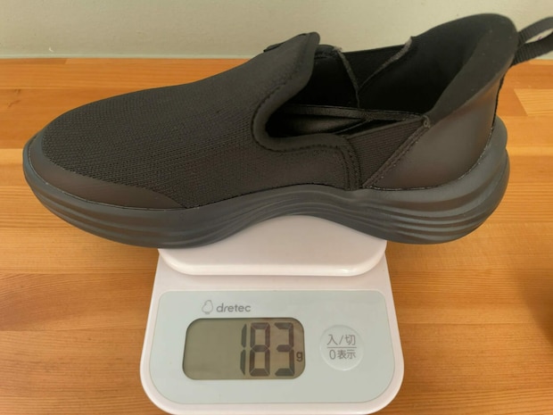 さらに、片足約183gととても軽いため、長時間歩いても足が重くなりにくい印象。実際に1時間ほど散歩してみましたが、いつもより足の疲労感が少なかったように感じました。