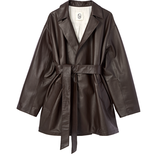 しなやかなレザーを使用したコート。オーバーサイズな仕立てはこなれた印象で着られる。レザージャケット¥165,000(インパーフ)