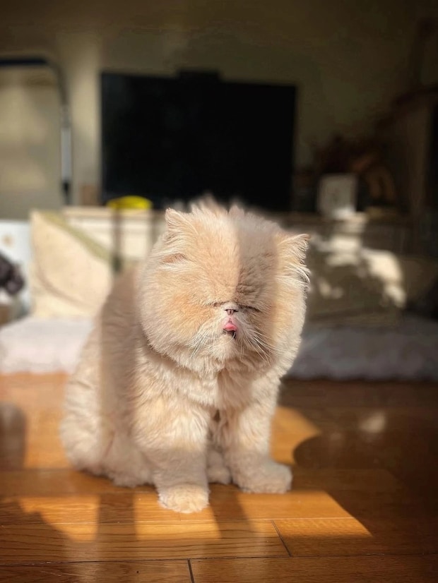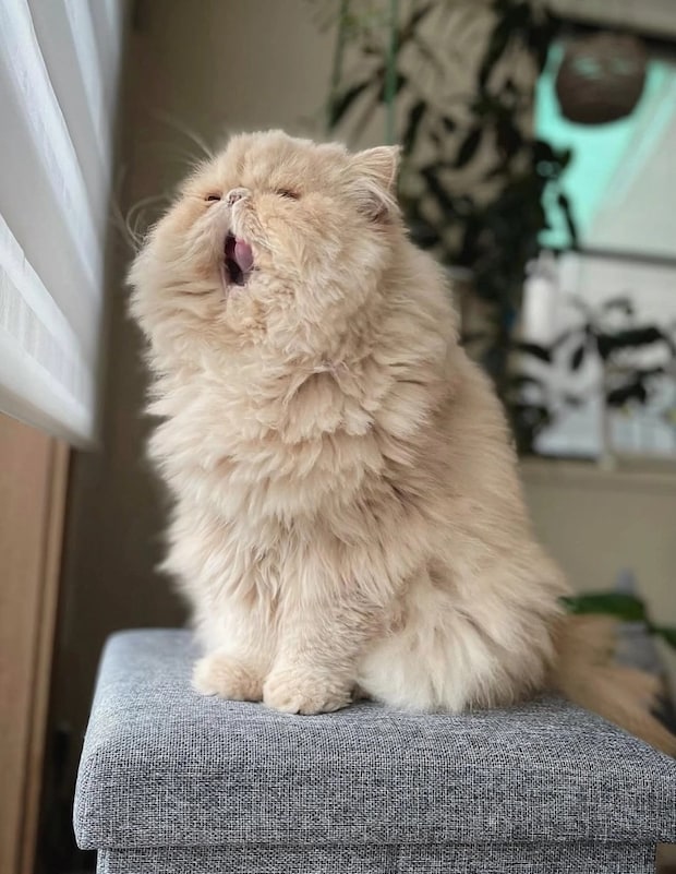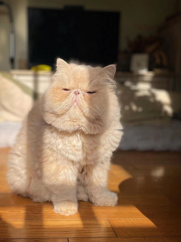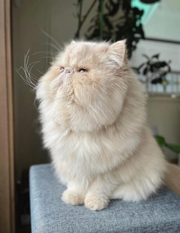 かわいいお顔がうもれちゃう!?くらいモフモフ最強のエキゾチックロングヘアの猫ちゃんを発見!名前は『おぶ』ちゃん♡渋いのにかわいいがぎゅーっと詰まった表情にノックアウトです♡このとてつもない、愛おしさ満載のお姿を大公開します!