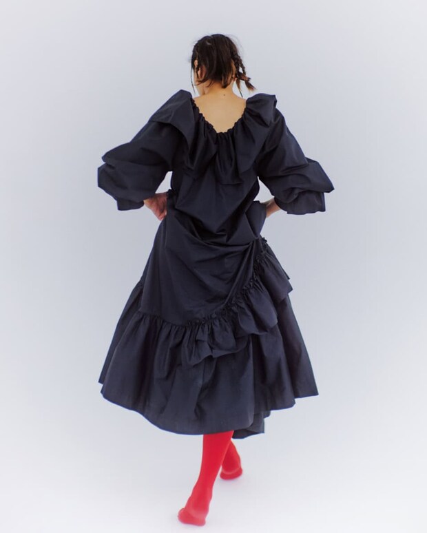 ドレス¥148,500(ザ・ミーニング・ウェル/アトリエ・エムオー)、サッカーソックス/スタイリスト私物