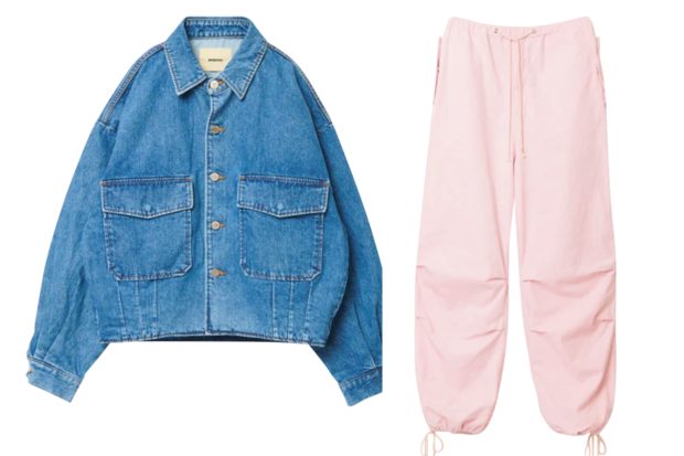 デニムジャケット¥46,200、パラシュートパンツ¥28,050(共にザ シシクイ)