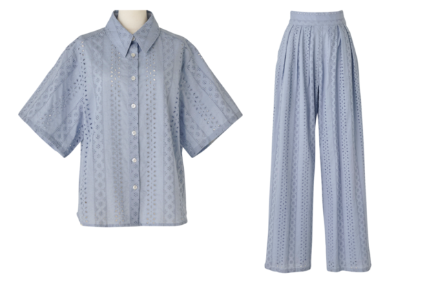 トップス¥22,000、パンツ¥24,200(共にアンティミテ/アンセミック)