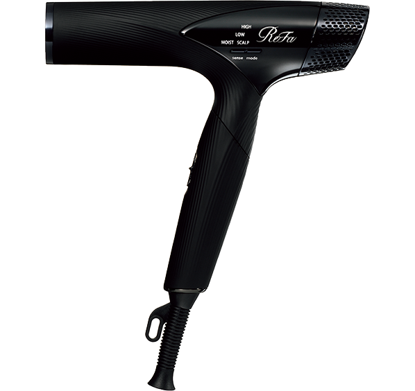 約330gという使いやすい軽さとサイズ感。内蔵センサーが髪に最適な温度を巧みに操り、髪の水分量をコントロール。リファビューテック ドライヤー スマート ブラック ¥38,000(MTG)