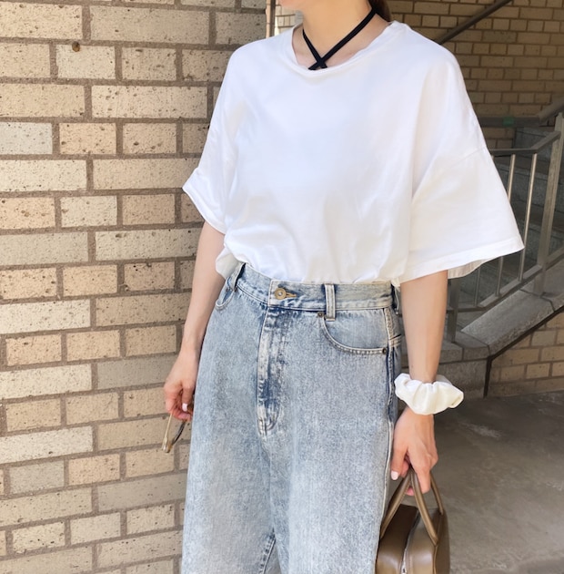 遊びのあるアイテムを合わせてシンプルな白Tを自分らしく