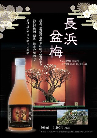 「長浜盆梅」は数量限定。売上の10%は「長浜盆梅展」の梅の木の保全に活用される。