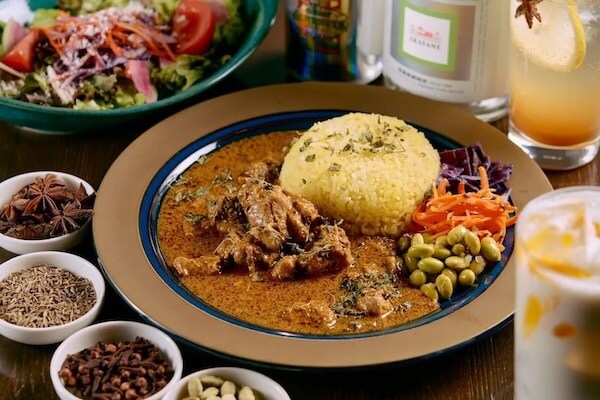 「RUU SPICE SHOKUDO」は、昼はスパイスカレー専門店、夜はスパイスを活かした創作料理を提供する居酒屋として、2024年8月にオープンした。レギュラーカレー3種に加え、毎月1種類の月替わりカレーを提供。すべてのスパイスは店内で挽き、カレーの種類ごとに独自調合しているのが特徴。地元の米農家の米とインドのバスマティライス(インディカ米)をブレンドするなど米にもこだわり、「毎月来なきゃいけない」と常連客から好評だという。