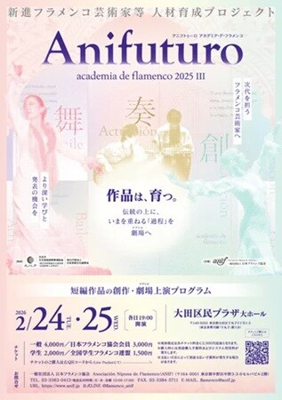 日本フラメンコ協会は大田区民プラザにて、2月24日(火)・25日(水)に新進フラメンコ芸術家育成プロジェクトの成果発表公演『Anifuturo – academia de flamenco 2025 Ⅲ』を開催する。