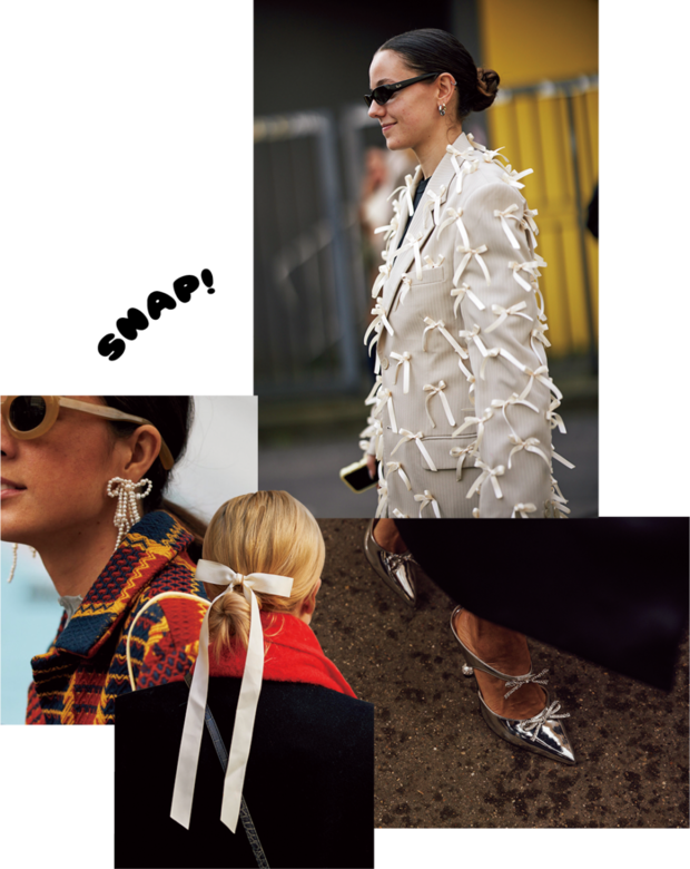 「ガーリー過ぎるでしょ」とこれまでなら敬遠していたリボンモチーフですが、たまには大人の茶目っ気をアピールしてもいいのでは、と。そう、意外とリボンの装飾が目立つアイテムでもしっくり。楽しんだ者勝ちです。