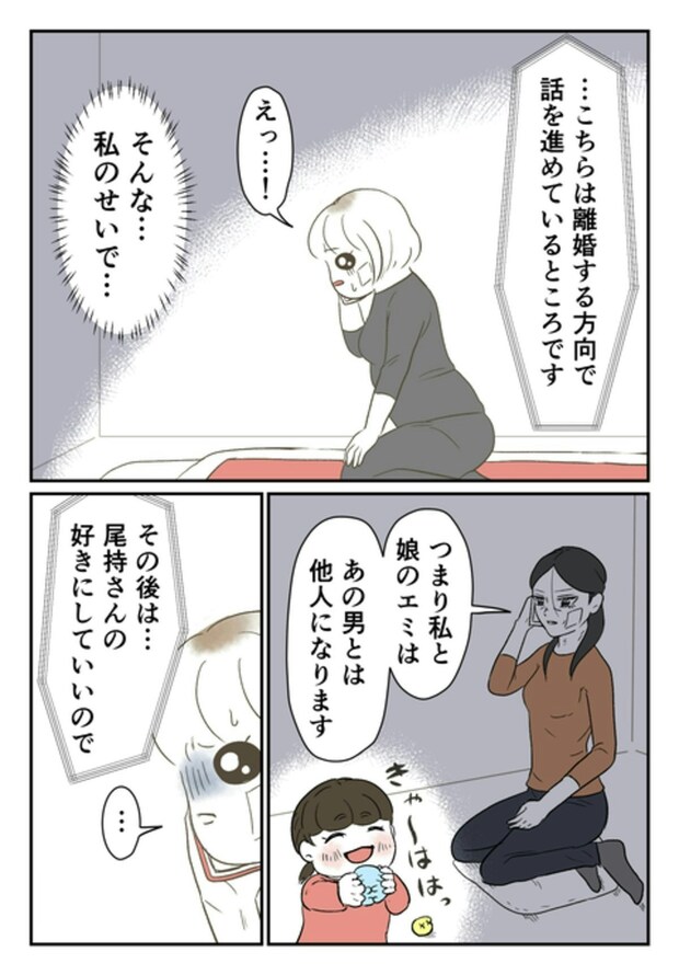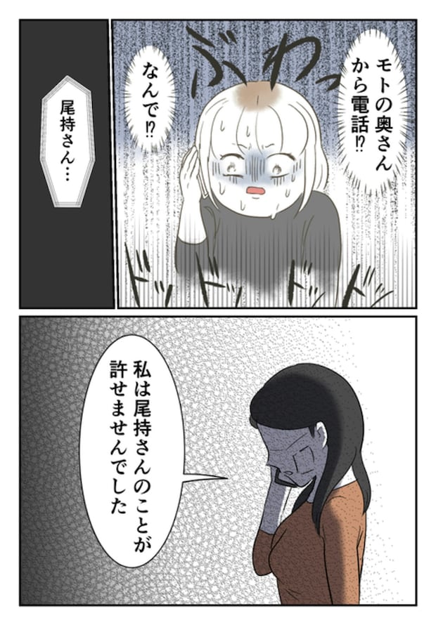 電話の発信者は、モトさんの妻でした。「尾持さんのことがゆるせませんでした」と言い、うらみ言を並べます。ですが、妻も頭の中では、尾持さんも「被害者」であることを理解していました…。