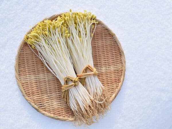 このもやしは、温泉熱を利用した特殊な栽培方法により、通常の2倍以上の長い軸とまるでアスパラガスのようなシャキシャキとした極上の食感、そして噛むほどに広がる香ばしい風味が特長だ。