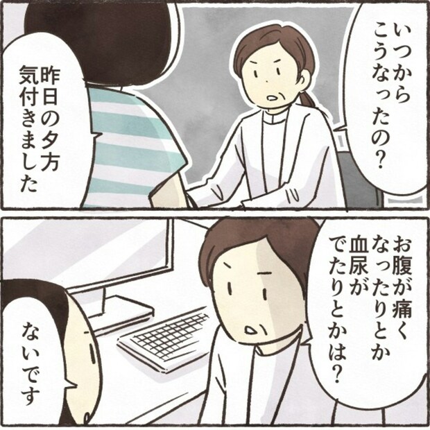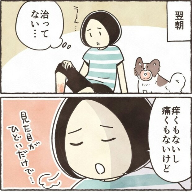 ふくらはぎに真っ赤な湿疹ができてから翌日も症状は治らず、皮膚科を受診することにしたきなこさん。念のため…と、軽い気持ちで病院に向かったきなこさんでしたが、先生から思いもよらない言葉を掛けられます。