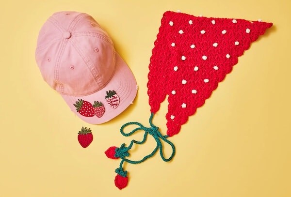 OVERRIDE「いちごモチーフのワッペン各種」「いちごちゃんバブーシュカ」。