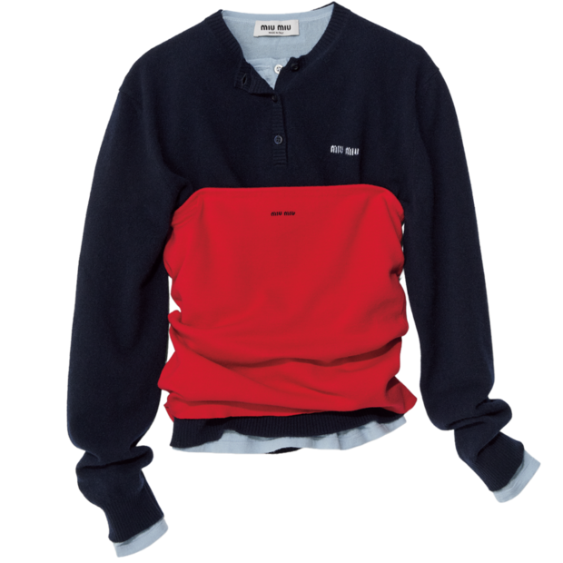 「カラーリングも素敵なんです」上から:ビスチェ¥138,600、ニット¥313,500、ポロニット¥258,500※全て予定価格(全てミュウミュウ/ミュウミュウ クライアントサービス)