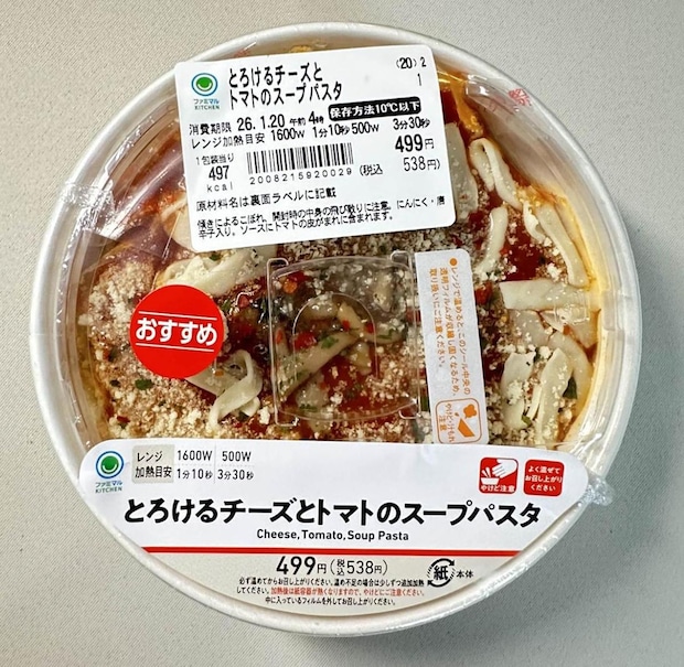 「今日は寒いし、温かくてガツンと元気が出るものが食べたい!」そんな日にぴったりの一品をファミリーマートで発見しちゃいました! その名も「とろけるチーズとトマトのスープパスタ」。