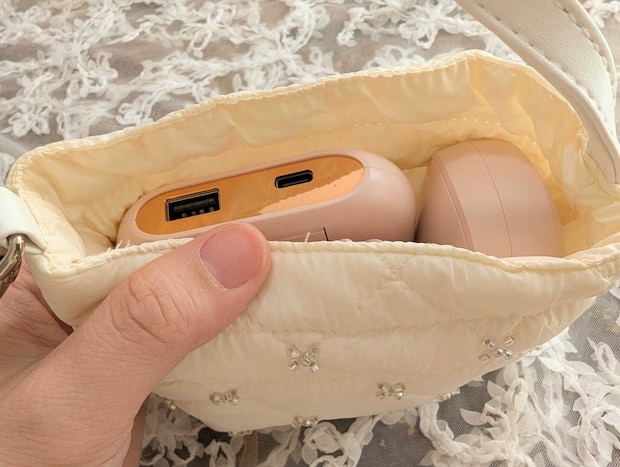 小さめのモバイルバッテリーとイヤホンも入りました。バッグで行方不明になりがちなんですよね!