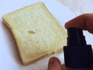 1.食パンの両面に、霧吹きで水をかけるのがポイント。