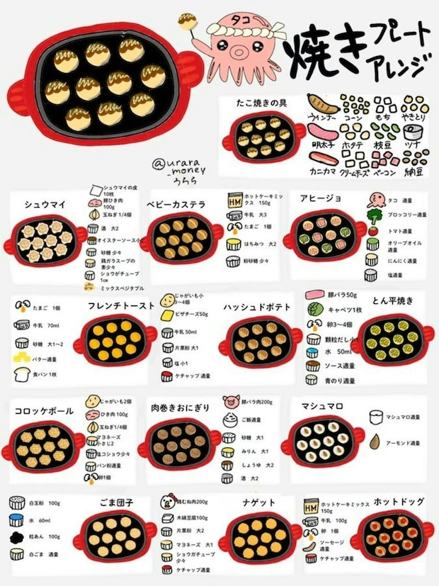 うらら(@urara_money)さんの投稿です。皆さん、たこ焼きプレートって、実はたこ焼き以外でも大活躍するのをご存じでしたか?