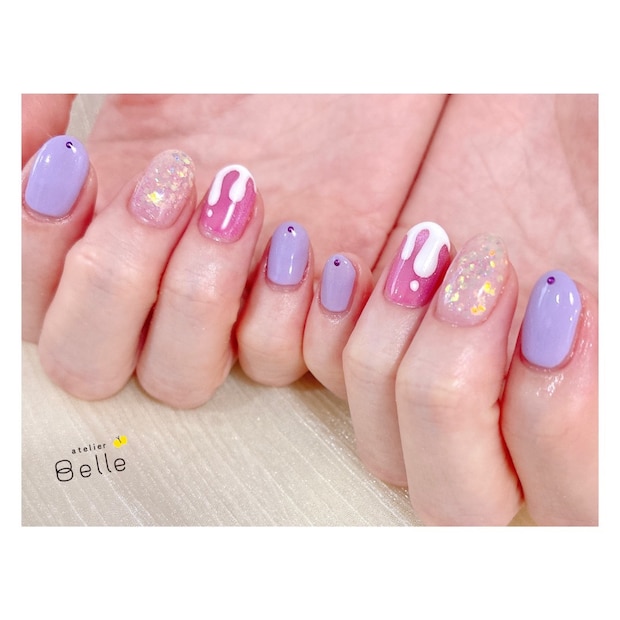思わず目を引くパープル×ピンクネイルにとろけるクリームアートがおすすめ