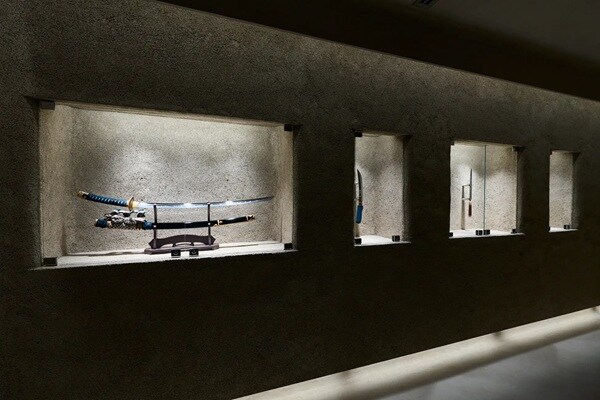 約8メートルの吹き抜けいっぱいに並ぶ包丁によって、一本一本に積み重ねられてきた時間や技の痕跡を静かに映し出す“時間のアーカイブ”として表現した。