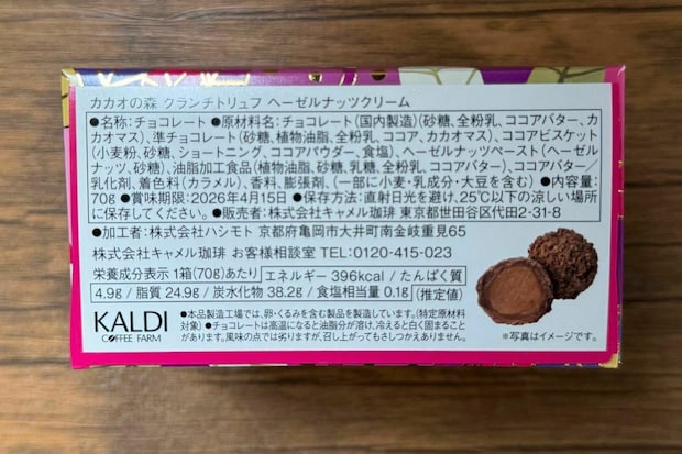 ピンクと紫を基調にしたパッケージが店頭でも一際目を引いた「カカオの森 クランチトリュフ ヘーゼルナッツクリーム」。
