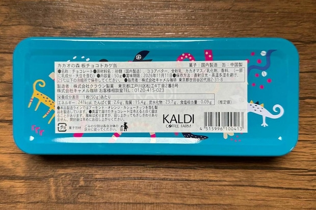 商品名:カカオの森 板チョコトカゲ缶