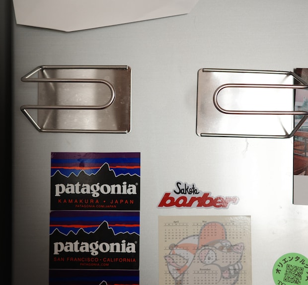 こちらのペーパーホルダー、強力なマグネットはもちろん、左右が別れているため、