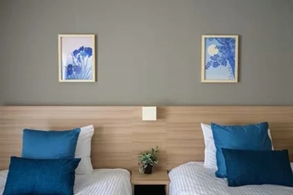 スモーキーブルーを基調とした内装は、日本らしい落ち着きと現代的な洗練さを融合させたデザイン。海外ゲストからも評価の高い「和のテイスト」を取り入れつつ、家具・家電・照明に至るまで統一感のある設えとし、写真映えと居心地の良さを両立している。