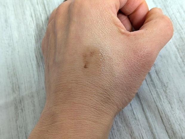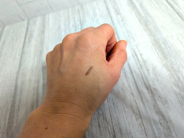 手の甲にアイブロウを塗って、実際にクレンジングした際の使用感などを詳しくお伝えします。