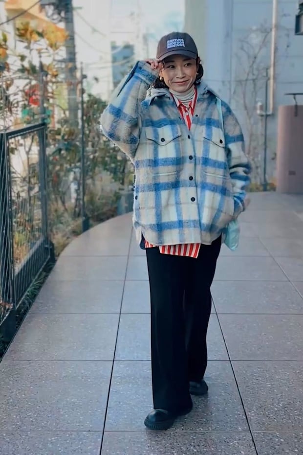 ブラウン✕ブルー、ブラウン✕レッド、の組み合わせってすごく相性が良くてとても好きな組み合わせなのですが、この日は思い切ってブルーもレッドも一緒に着てみました!さらにブラウンのキャップを被るだけで、旬なバランスに…!トレンドカラーを入れるだけで、一気に今っぽくなります。