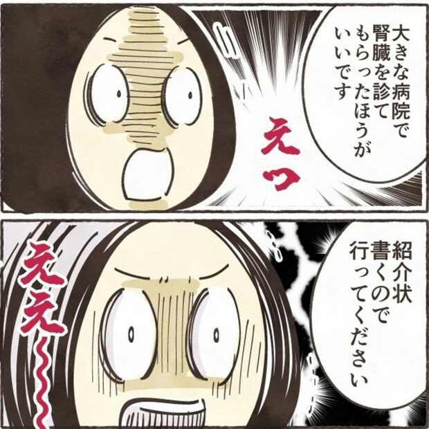 皮膚科で告げられたのは予想外の結果でした。腎障害を併発しているかもしれないという先生からの言葉に、きなこさんは驚きを隠せません。