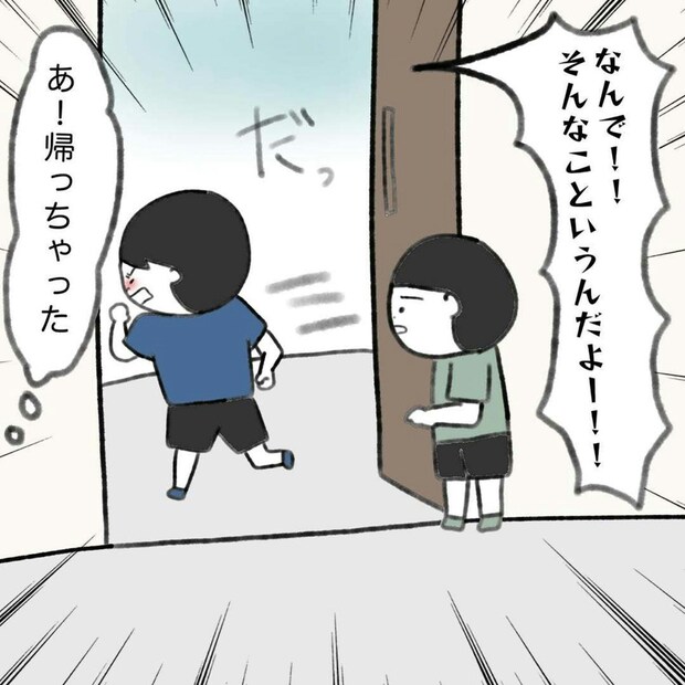 かかじりさんの息子・かいくんに「意地悪ばっかりするからもう遊ばない」と言われたこうたくんは、怒って飛び出してしまいました。