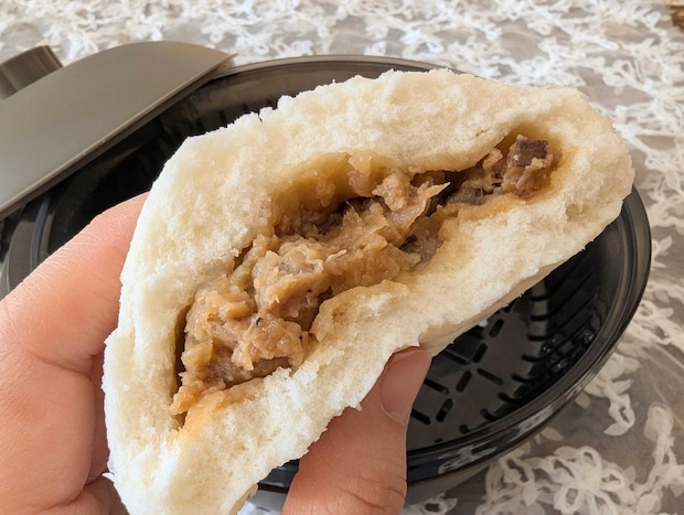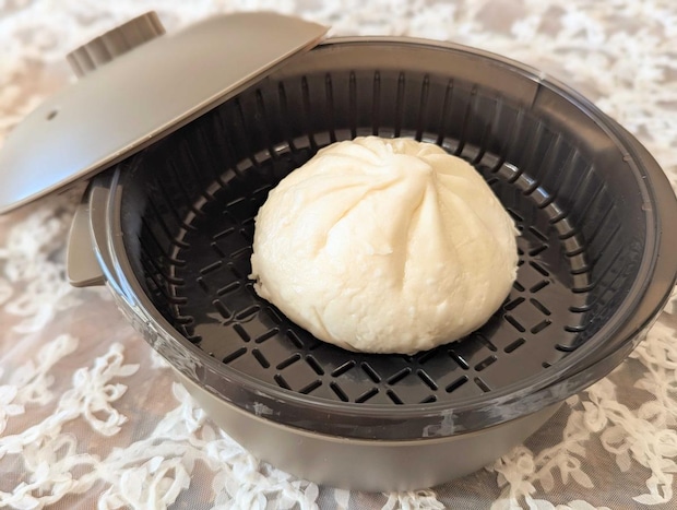 ザルを使えば、蒸し器としても大活躍。肉まんもふっくら美味しく仕上がります。 この断面をみてください!とても美味しく蒸すことができました!