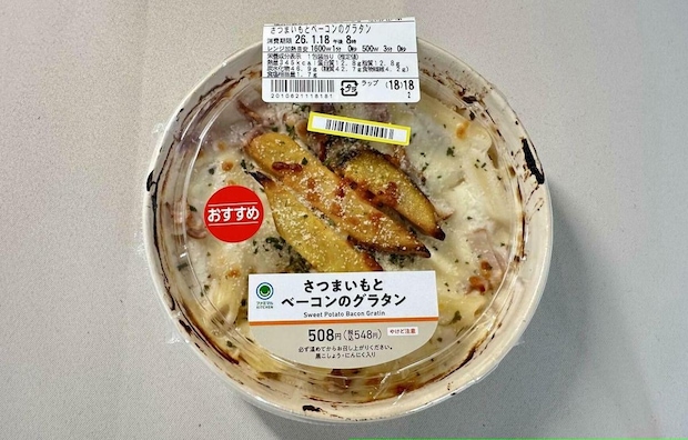 ファミリーマート「さつまいもとベーコンのグラタン」は溢れるチーズの香りが罪深い…