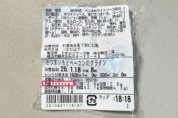「これだけチーズが入ってて、さつまいもも載っているなら、カロリーがすごいことになってるんじゃ…?」と心配になったそこのあなた!パッケージの裏を見て、私は思わずガッツポーズしちゃいました。