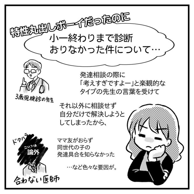 担任やスクールカウンセラーなど周りの力を借りながら、ありのままの我が子と向き合う母の葛藤を描きます。二度目に訪れた病院の先生はとても穏やかな人でした。