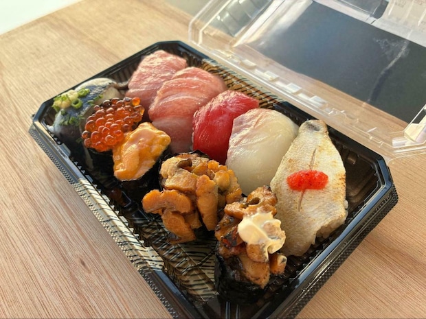 今回は、大トロ、マグロ赤身、穴子、うに、いくら、アジ、真鯛、秋刀魚をチョイスしました。価格は一貫150円から350円ほどと、ネタによってバラバラですが、手に持った瞬間の「重み」が違います。